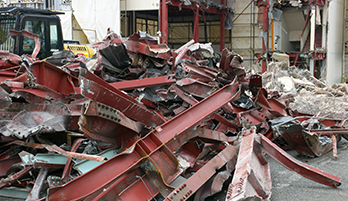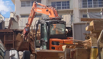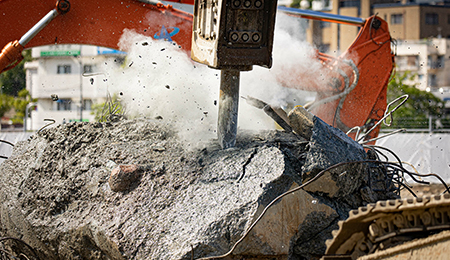 コンクリートの中に鉄筋を配した素材で建てられており、規模も大きくなるため、騒音・粉塵対策をしっかりと行い、解体工事を進めます。