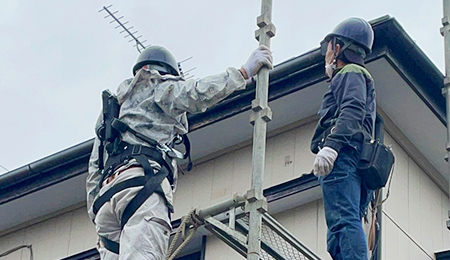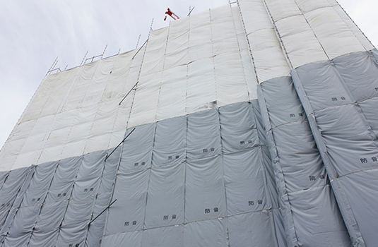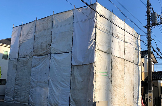 現場に応じた養生シートを用いて、粉塵や騒音などを防ぎ近隣住民様のご迷惑にならないよう配慮いたします。